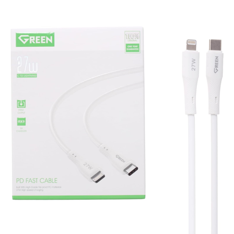 | Type | Green Cabble CL206 Super Fast Cable, 27W Lightning to Type-C, 3ft, PD Charging for iPhone – White |