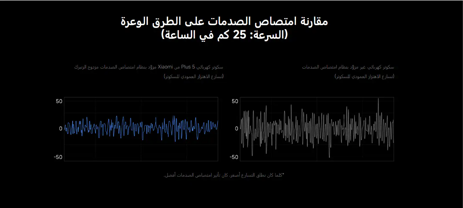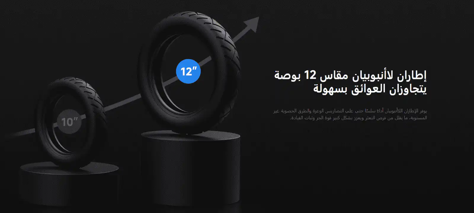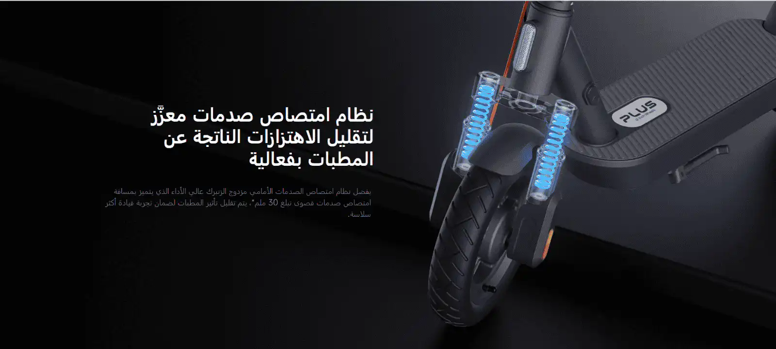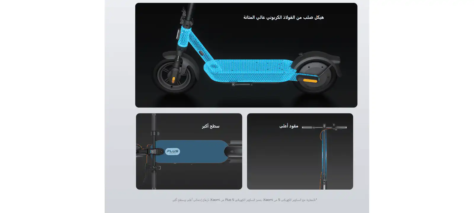 شاومي سكوتر 5 بلس يرفع التنقل بإطارات 12 بوصة غير أنبوبية تهزم الحصى/الحفر بينما محرك 400 واط (900 قمة) يصعد 20% تلال بسرعة 15 كم/س. تعذيق أمامي ثنائي 30 مم ينعم العوائق مع TCS منع الانزلاق المبلل. سطح أكبر/مقود أعلى للراحة مع مدى 60 كم.