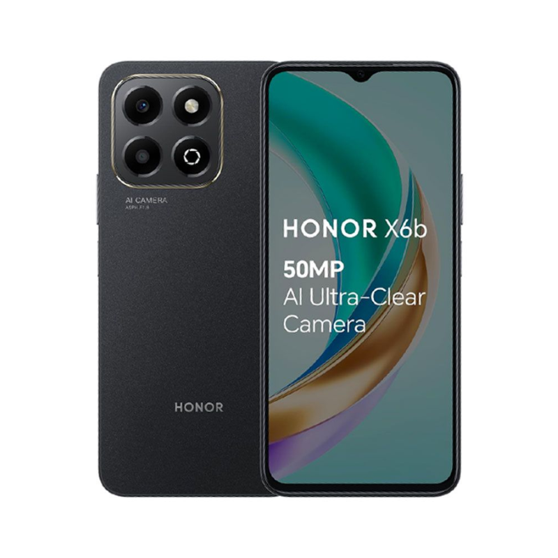 Honor X6b (6+128GB) Black – IPS LCD 90Hz, Helio G88, 50MP camera, 5000mAh battery, 22.5W charging, premium black design.