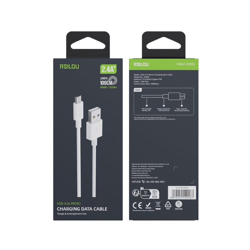Key Features – CABLE RSILOU USB-A TO MICRO 2.4A 1M (R2002-001)