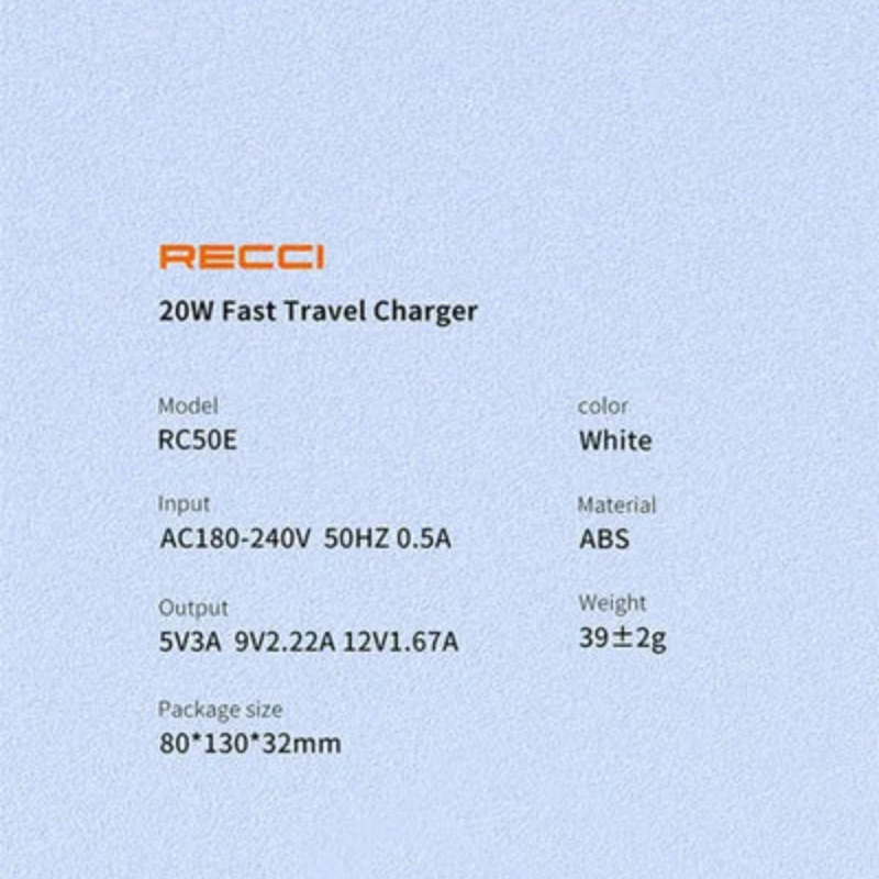Recci RC50E delivers PD 20W fast charging optimized for iPhone 17 (50% in 30 minutes) and Galaxy S25 through intelligent voltage negotiation (5V/3A, 9V/2.22A) while universal 100-240V input supports worldwide travel. Dual protection circuitry prevents overheating and overcurrent damage during continuous use with fireproof PC housing surviving drops and daily outlet insertion. Compact single USB-C port design fits tight spaces maintaining universal compatibility across Apple, Samsung, Google Pixel, tablets without proprietary chips ensuring maximum charging speeds universally.