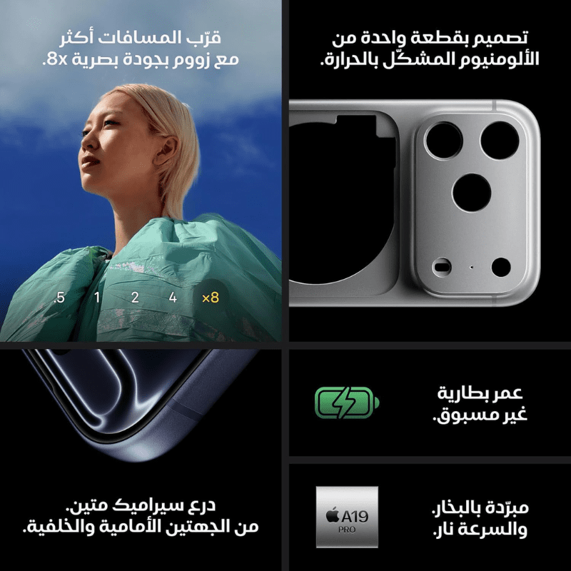 iPhone 17 Pro Cosmic Orange 512GB records ProRes RAW 4K120 with 18MP front camera OIS SL 3D while A19 Pro enables real-time Arabic content translation for e-commerce creators. Compact 6.3″ LTPO display achieves 3000 nits brightness readable during Cairo sunlight while USB-C 3.2 Gen 2 delivers 40Gbps transfer speeds for rapid 4K video exports from Maadi warehouses. Lightweight 207g aluminum unibody survives daily professional handling.
