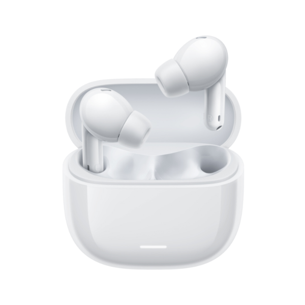 Redmi Buds 6 Lite White earbuds feature 12.4mm titanium-diaphragm drivers delivering powerful bass, clear treble across 20Hz-20kHz range, with up to 40dB hybrid ANC blocking low-frequency city noise and 2kHz broadband coverage. Dual microphones with AI noise reduction handle 6m/s wind for clear calls, enhanced by Xiaomi Earbuds app offering 4 preset EQs (treble/bass/voice/standard) plus custom settings—Bluetooth 5.3 supports stable 10m dual-device pairing. 45mAh buds + 480mAh Type-C case provide 38 hours total playback from under 2-hour charge.