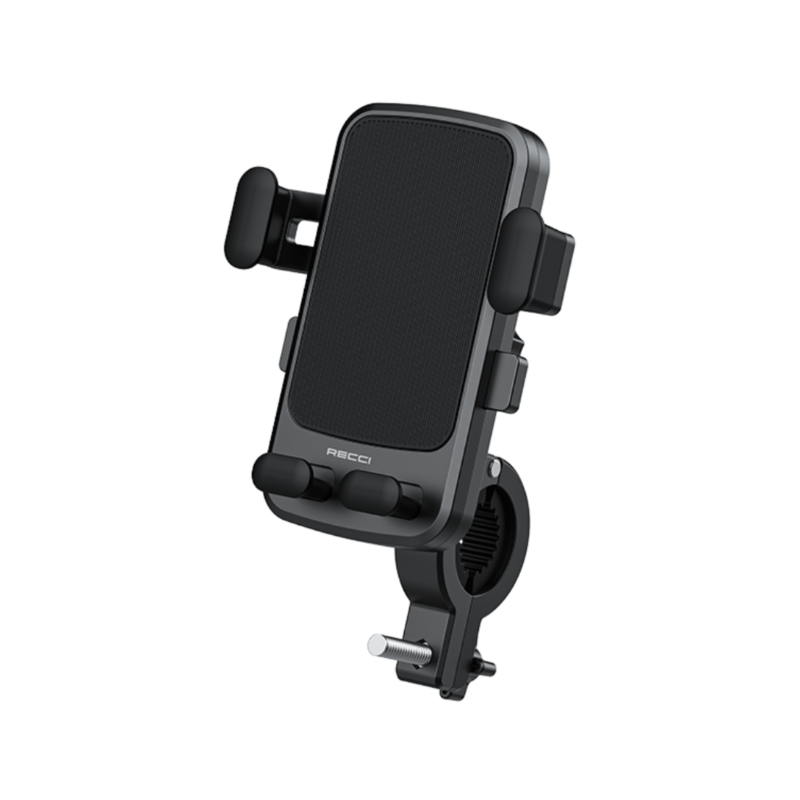 Recci RHO-C23 secures smartphones with 4-point rubberized grip maintaining stability during high-speed cornering and road vibrations while 360° ball joint enables portrait/landscape orientation for GPS/maps viewing. Universal handlebar clamp fits 22-32mm motorcycle grips and car AC vents with quick-release lever for instant mounting across sedans, bikes, trucks. Shock-absorbing silicone pads protect phone cases from scratches while one-handed clamp operation allows safe phone insertion/removal at traffic lights. Durable metal construction survives daily weather exposure ensuring long-term road reliability.