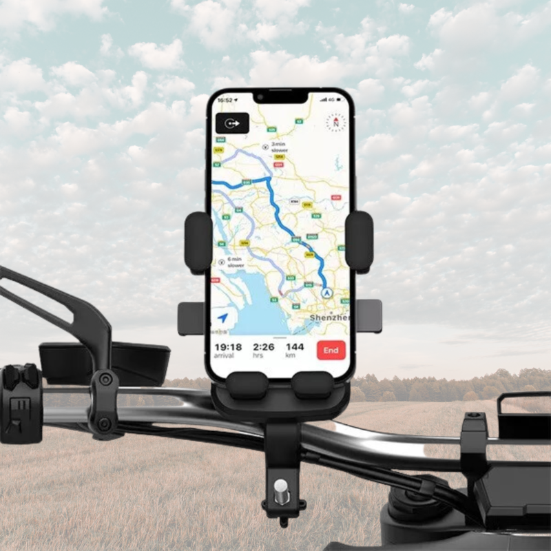 4-point grip + shock absorption handles road/motorcycle bumps.