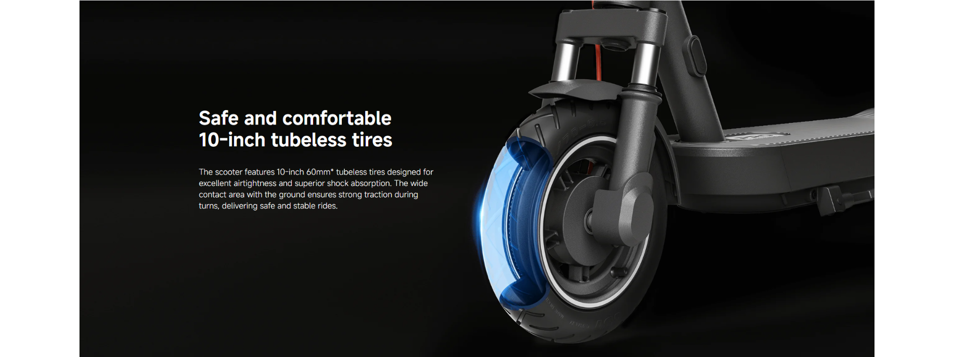 *60mm tire tread width: A vernier caliper was used to measure tire width. A value no less than the design value, is considered to meet the requirements. The tire width of the Xiaomi Electric Scooter 5 Pro is 60mm. Data comes from the manufacturer.