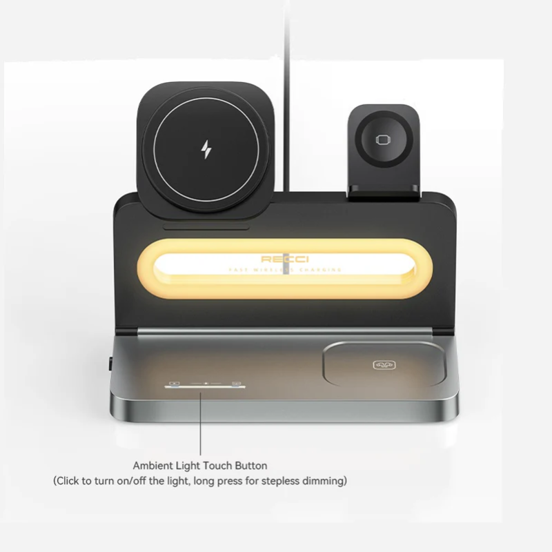الميزة المواصفة شحن iPhone 15 واط MagSafe ساعة/سماعات مناطق لاسلكية مخصصة الإضاءة RGB قابلة للتعديل الحامل دوار 180° التصميم 4 في 1 قابل للطي المغناطيس قوي الصوت سماعة بلوتوث المادة…