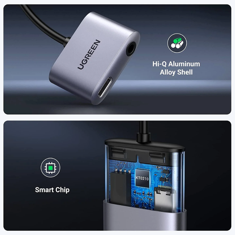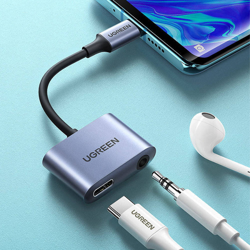 محول UGREEN Type-C to 3.5mm + PD (60164).