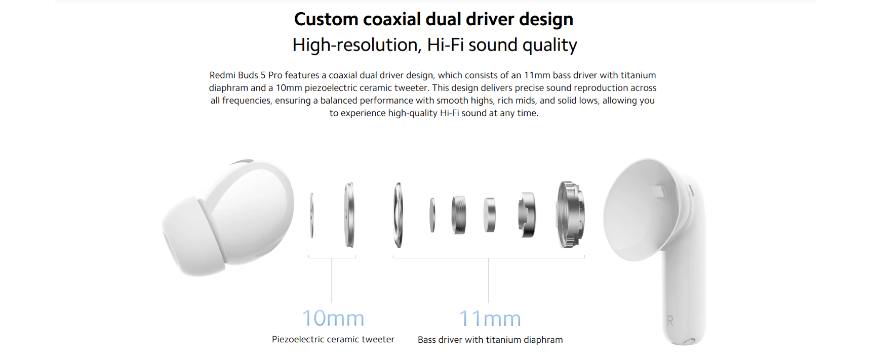 سماعات ريدمي بودز 5 برو سوداء تحتوي درايفرات مزدوجة متحدة المحور—11 مم تيتانيوم جهير و10 مم سيراميك تريبل—لـHi-Res Audio Wireless مع ترميز LDAC بـ24 بت/96 كيلوهرتز صوت فائق الدقة عبر ترددات متوازنة. إلغاء ضوضاء هجين 52 ديسيبل رائد مع تقليل 4 كيلوهرتز عريض يحجب الضوضاء المحيطة بفعالية، بينما 3 ميكروفونات AI تقليل ضوضاء المكالمات تضمن محادثات صافية حتى رياح 9 م/ث. السماعات 53 مللي أمبير توفر 10 ساعات (ANC off) مع علبة 570 مللي أمبير لـ38 ساعة إجمالي، شحن 5 دقائق = 2 ساعة.