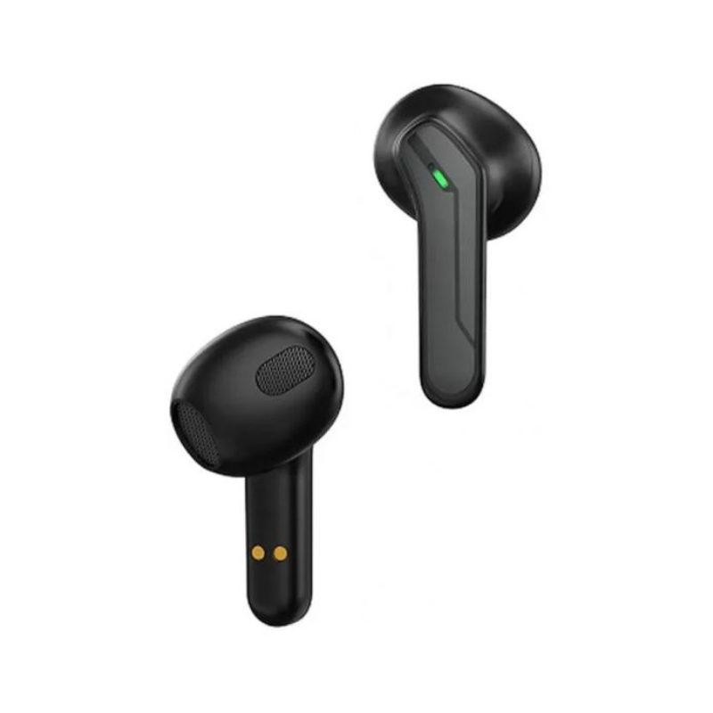 سماعات ريسي RT12 سوداء تستخدم بلوتوث 5.0 لاتصال مستقر 10 أمتار مع تحكم لمسي للموسيقى والمكالمات وتعديل الصوت. كل سماعة بطارية 30 مللي أمبير توفر 4 ساعات تشغيل موسيقى أو مكالمات متواصلة، مدعومة بعلبة Type-C 300 مللي أمبير لاستخدام ممدد وشحن كامل في 2 ساعة. جودة صوت Hi-Fi مع ميكروفون قوي يضمن تواصلاً واضحاً في الألعاب والمكالمات، مع إضاءة خضراء على البوكس للمظهر الرياضي.
