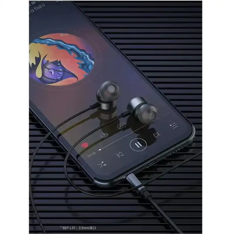 سماعة ريتشي 3.5 (REP-L37) ببنية معدن+ABS+TPE متينة مع درايفر هورن ديناميكي 10 مم يقدم بيس صادم وصوت وسط واضح عبر 50 هرتز-10 كيلو هرتز بموصل 3.5 مم 4 قطب مطلي ذهب لنقل مثالي. كابل TPE 1.2 متر مقاوم التشابك مع تصميم مائل داخل الأذن يوفر عزل صوتي وثبات بدون تعب لفترات طويلة. ميكروفون مدمج مع تحكم خطي ذكي للمكالمات والصوت على الهواتف واللابت والتابلت.