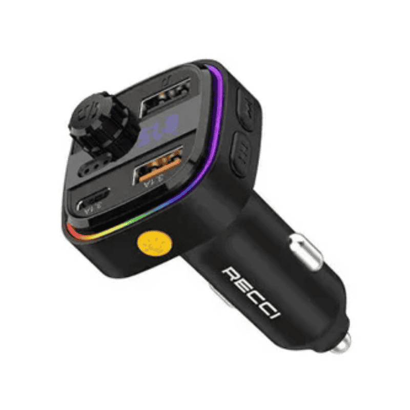 ريسي RQ08 يحوّل مقبس السيجارة لمحطة شحن 3 منافذ 30 واط مع إرسال FM يبث موسيقى الهاتف لسماعات السيارة 87.5-108 ميجا هرتز بينما بلوتوث 5.0 يربط فوراً لمكالمات بدون يدين وبث لاسلكي. فتحة U-disk تشغل MP3/WAV مباشرة مع شاشة رقمية تعرض التردد والجهد والمسار بينما توزيع ذكي 5V/3A يشحن S25 + آيفون 17 متزامن. نطاق جهد 12-24V للسيارات والشاحنات والموتوسيكلات.