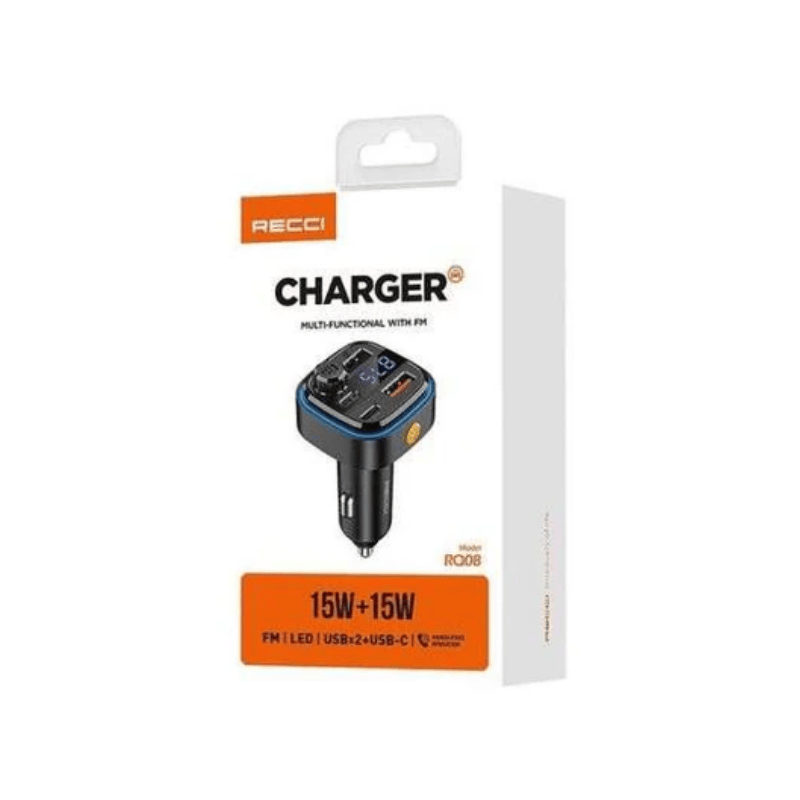 RECCI 15W+15W Multi-Functional With FM Car Charger RQ08 - Three