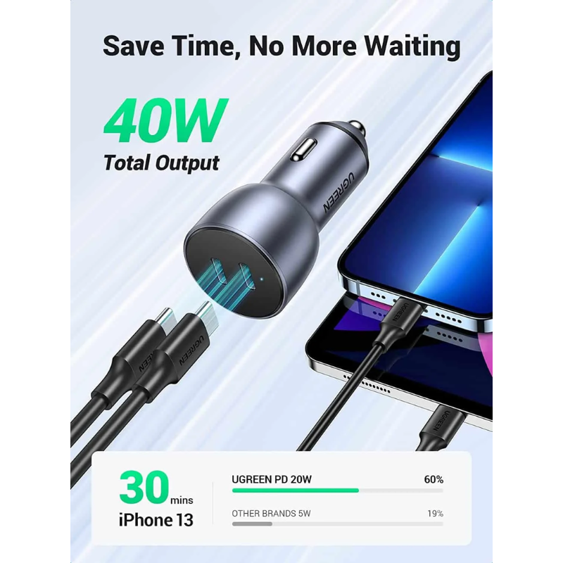 المميزات الأساسية | UGREEN EC213 2‑Port 50W Car Charger