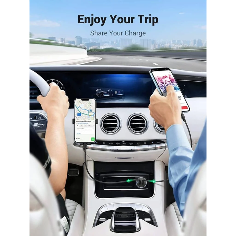 مثالي للسائق والراكب لشحن هواتفهم بنفس الوقت (آيفون + أندرويد) بسرعات PD لكل منفذ.