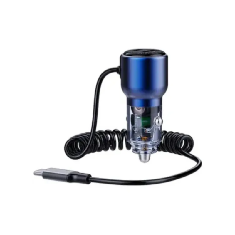 PD 65 واط USB-C + 45 واط USB-A؛ 110 واط إجمالي؛ كابل ربيعي 1.8 متر؛ DC 12-24V؛ ألومنيوم + شفاف؛ حماية متعددة؛ شعار محفور؛ 62 جرام مدمج.
