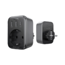 شاحن UGREEN CD314 4 في 1 يحتوي USB-C PD حتى 30 واط (5V/3A، 9V/3A، 12V/2.5A، 15V/2A، 20V/1.5A)، منفذي USB-A بـ18 واط كحد أقصى لكل، ومقبس AC كامل 3680 واط/16A لشحن متزامن لهواتف وتابلت ولابتوب وأجهزة مثل تلفزيونات أو بروجيكتور. تقنية GaN تمكّن كفاءة مدمجة مع دعم PD 3.0 وQC4+ وPPS وAFC وSCP وبروتوكولات أبل 2.4A لتوافق شامل. مواد PC مقاومة للحريق UL94-V0 مع دائرة حماية متعددة تحمي من الارتفاعات والحرارة والقصر الكهربائي.
