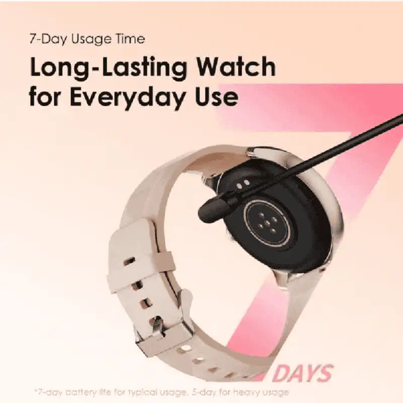 Oraimo Watch 2R OSW-30 Gold edition features elegant metallic finish with 1.39-inch 360×360 TFT readable in bright Cairo sunlight while Bluetooth 5.2 enables wrist calling without phone. IP68 survives showers/swimming with 120+ sports modes auto-tracking runs/gym while 260mAh battery lasts 7 days standby/5 days active use. Gold silicone strap complements formal wear syncing health data to oraimo Health app.